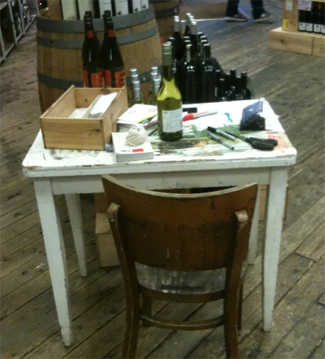 Our first purchase there was the result of a super cute hand-drawn fish label, around the bottle’s neck as part of their food-matching service. And here’s their little writing desk, presumably where the magic marker happens.